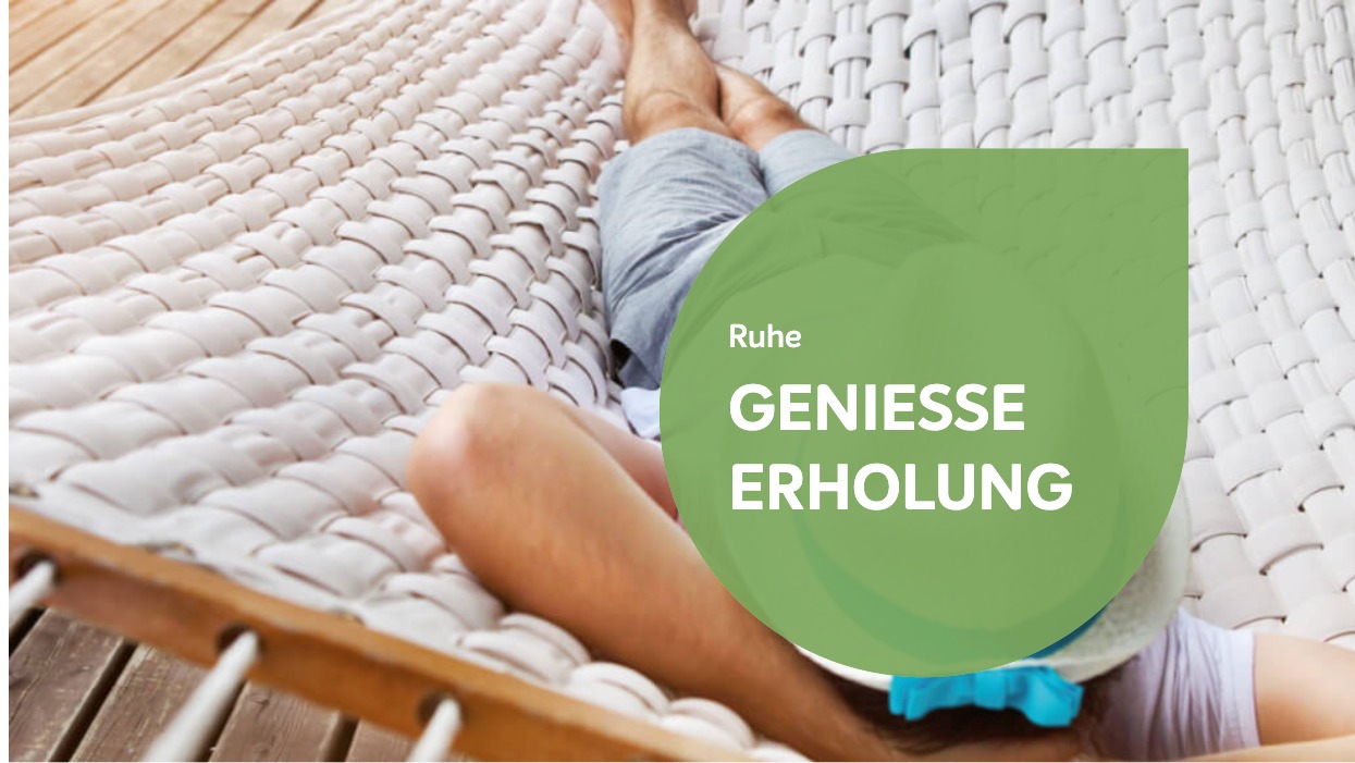 Auch auf den Urlaub sollte man nicht verzichten. Der Baustein Ruhe setzt sich aus einem Mosaik zusammen: tägliche kleine Pausen, erholsamer Schlaf, einen Ruhetag pro Woche und wenigstens einmal im Jahr einen erholsamen Urlaub.